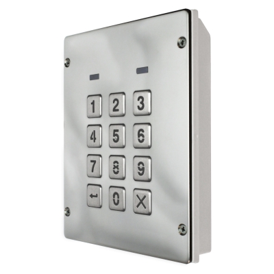 There are two optional codelocks available: the 8800BL keypad has 2 output relays and can be programmed with 2 access codes (1 code per relay). The 8900BL keypad also has 2 output relays, however can be programmed with up to 100 access codes which can be assigned to just one or both of the relays.